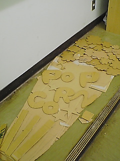 クラス前の装飾品作りとポップコーンの試作品を作りをしてました。