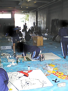 その後模造紙を引取に行って、適当にペンで書きなぐる。
