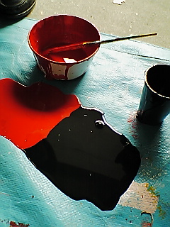 豪快にペンキをぶったおしました…^^